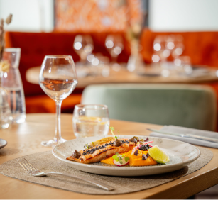 Face à la mer et aux îles Chausey, le restaurant propose aux curistes un large choix de mets à chaque repas. Avec son équipe, le chef labellisé Maître Restaurateur concocte chaque jour des plats fait-maison composés de produits frais et de saison, fournis en grande partie par des producteurs locaux.